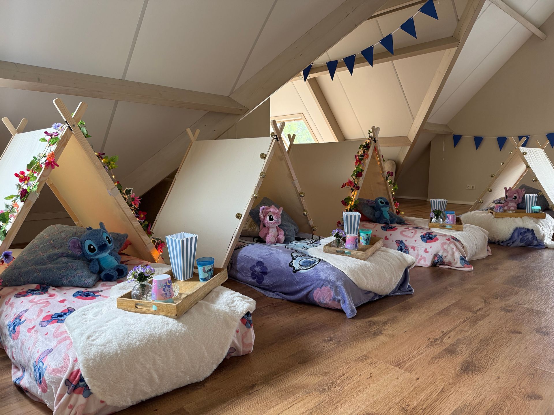 Wie houdt er nu niet van dit schattige blauwe wezen en zijn vriendin Angel? Bij dit thema worden jij en je vrienden omringd door Stitch, Angel en Leroy. Naast de Stitch-dekentjes en lampjes hebben we ook een levensgrote Stitch van maar liefst 1,50m. Durf jij hem een knuffel te geven?